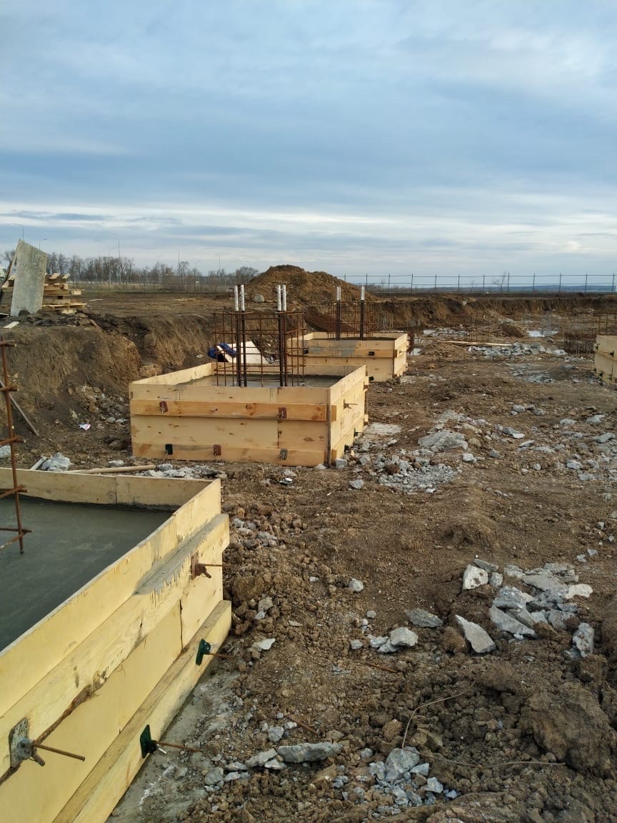 Ростов. Продолжаем бетонные работы. Заливаем нижние части стаканов здания площадью 2200м2